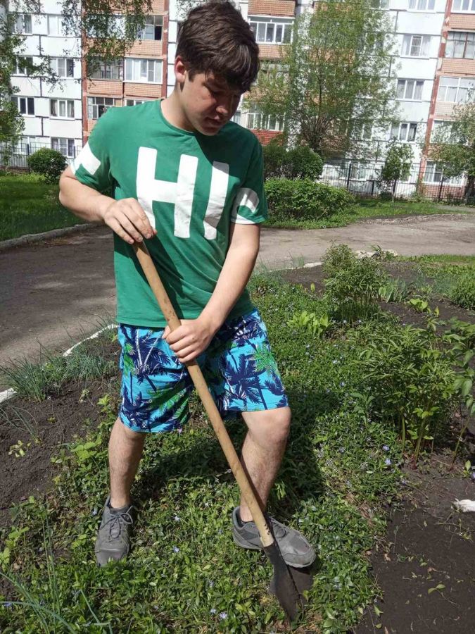 В группе воскресного дня на прогулке ребята не просто играли. Они под руководством своего воспитателя занимались оформлением клумб на территории школы-интерната. Труд на природе - это не игра или развлечение, а серьезное занятие. Воспитатель подводит ребят к пониманию необходимости труда, воспитывает желание участвовать в работах по уходу за растениями.