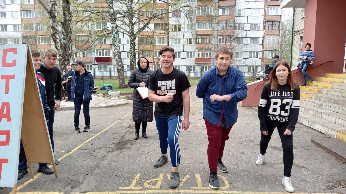 На старте учащиеся старших классов.